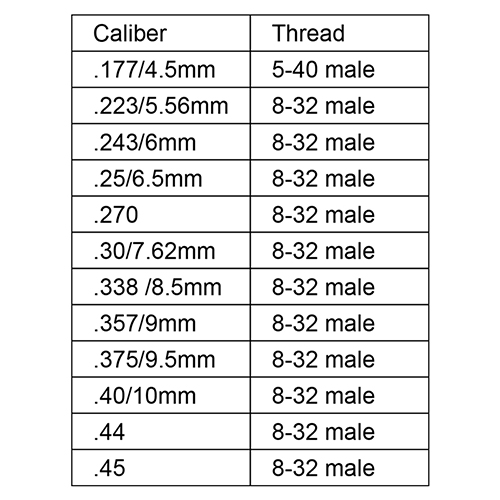 .177, 22, 6mm, 25, 27, .30, 338, 35, 3557, 40, 44, .