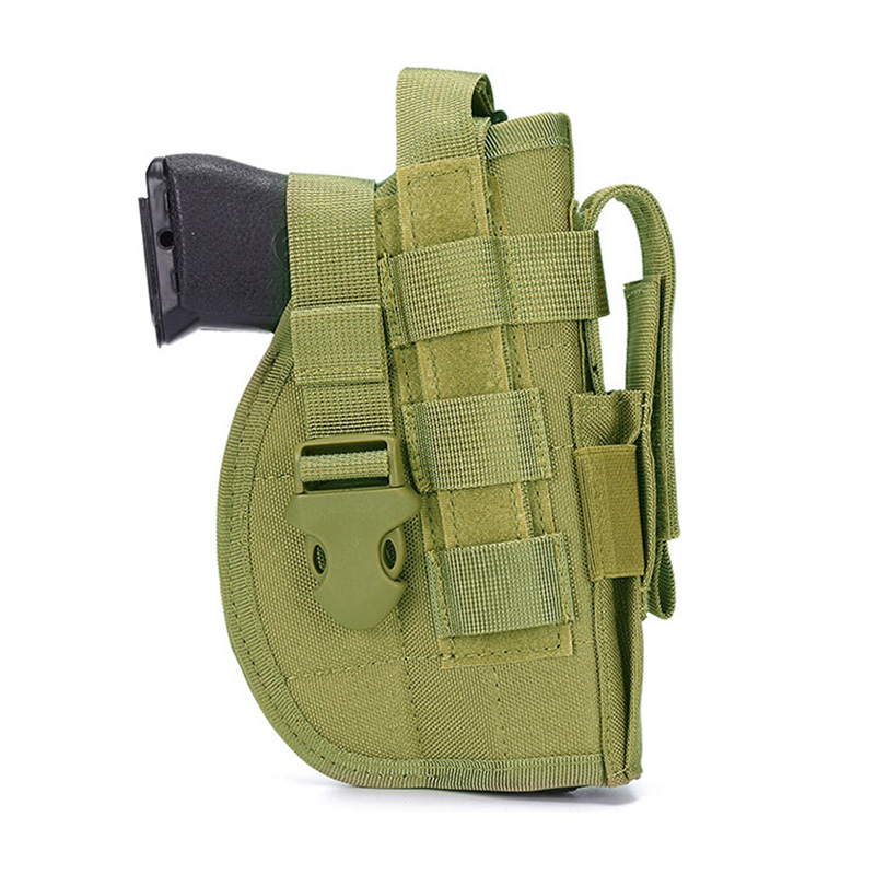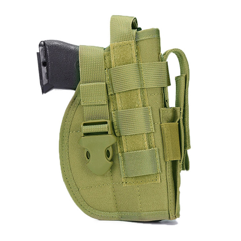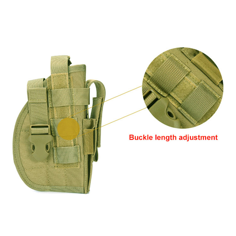 Preme materiam Neoprenam durabilem, mollem & spirabilem materiam interiorem, quae tuam electionem handgun celare securus est. Fibula fortis lorum arcte claudet et ne telum tuum emittat. Holsterae a validis nylon constructae non solum arte pulchrae sunt, sed etiam in usu durabiles.