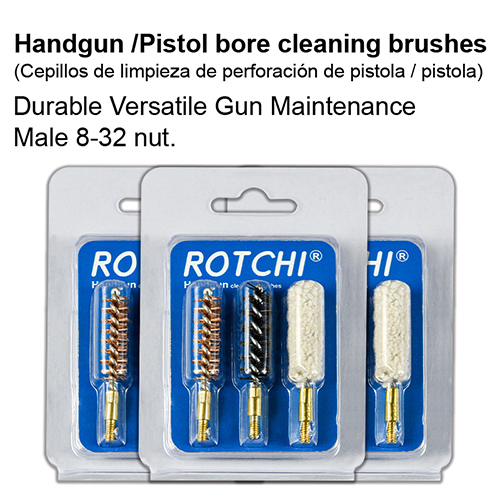 Handgun peperit purgatio penicillo III-in-I set, pustula et card sarcina. Praesto sizes: 22, 9mm, 40, .45cal.