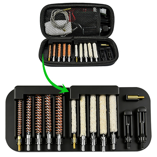 Ornamentum purgatio sclopetum 5 magnitudinum includit (.177, .22, .243, .27, .30 cal.), aes setis et bombicis mops, 5 virgas, 2 calbes. Sands et niger color ad electiones.